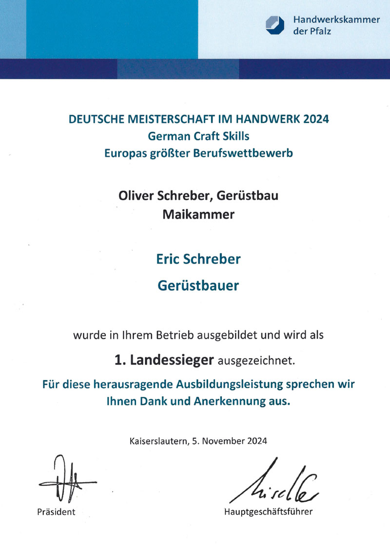 Wir sind ein mittelständisches Unternehmen mit Sitz in Maikammer an der Südlichen Weinstraße. Geführt wird die Firma von Oliver Schreber, der inzwischen über eine 20-jährige Erfahrung als Unternehmer, Betriebsleiter und Geschäftsführer verfügt. Zusammen mit unseren Mitarbeitern sorgen wir für eine sichere, zügige und günstige Realisierung Ihrer Gerüstbauprojekte. Ehrlichkeit und Zuverlässigkeit sind Voraussetzung für einen uneingeschränkten Einsatz.
